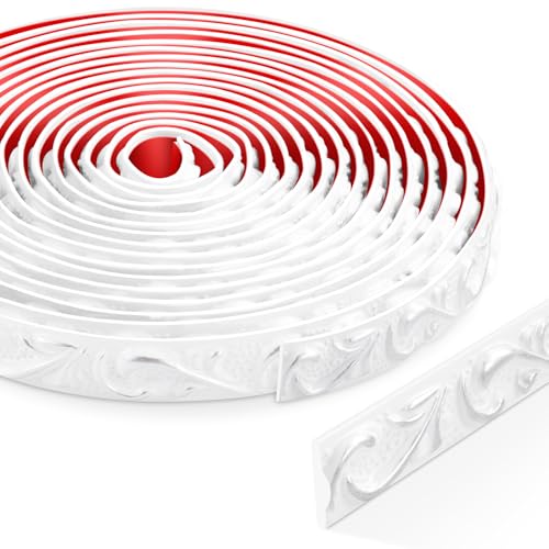 6 meter skala och klistra in självhäftande lister, 3D väggtrim, spegelramklistermärke för spegelramar, dörrkarm, tak, heminredning (vit med silver)