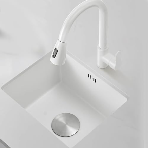 Vit diskbänk 304 rostfritt stål diskbänk Vit utdragbar kran Inbyggd diskbänk Bar Diskho Liten kaffehörn diskbänk inklusive tillbehör (storlek: 38x30x21cm)
