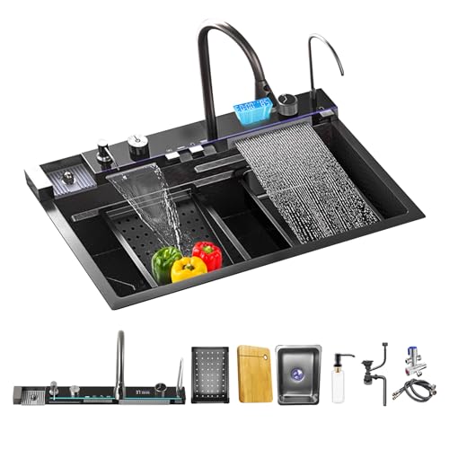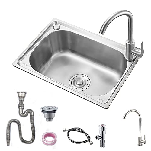 BIGYOUZI Diskbänk 304 rostfritt stål diskho enkel skål handfat eller dubbel skål handfat med dränering och litet diskho, koppbricka och tvåldispenser (75 x 46 x 22 cm, svart)
