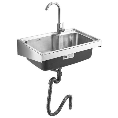EMENAR Väggmonterad Utility Diskho Rostfritt Stål Diskho För Tvätt, Liten Handtvätt Diskbänk, Kommersiell Handfat Med Kran För Restaurang, Kök, Bar, Garage (Color : Hot+Cold, Size : 68x44cm/26.7x17.