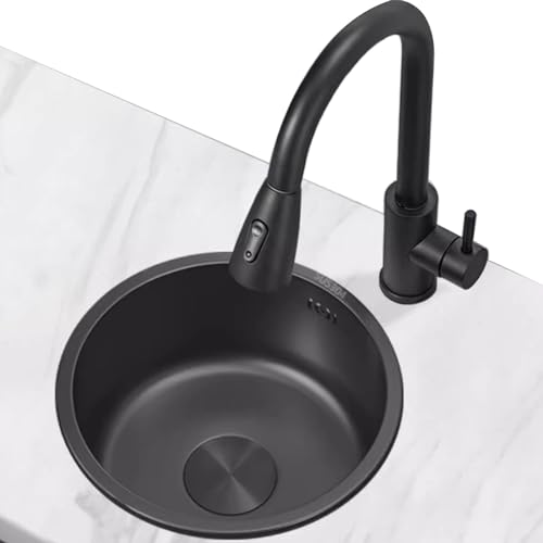 Svart Rund Diskho Rostfri Inbyggd Bardisk Med Utdragbar Kran Liten Balkongvask (S : 28 * 28 * 16.5cm)