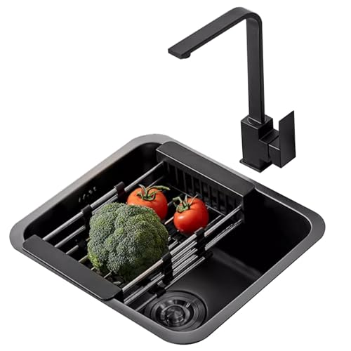 Sinks Kök Liten Diskho Svart Diskho Inbyggd Diskho 3MM Tjockt Rostfritt Stål Inklusive Kran Och Tillbehör (Color : Black 25x40cm)