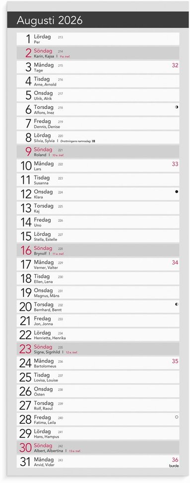 Klassisk kalender, liten, 2019–2020, dagmodell