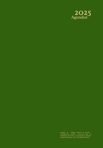 Kalender 2025 A5: Grön - Dagbok Veckovis på Svenska - Veckoplanerare - Vertikalt - 1 Vecka på 2 Sidor - års Bokkalender - Agendor Med Times - ... Till December - Liten - För Män och Kvinnor.