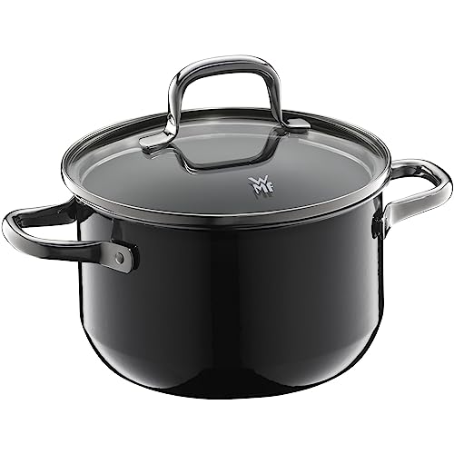 WMF Fusiontec Essential kastrull liten 16 cm glaslock, gryta induktion, 2,0 l, liten kastrull liten, högteknologisk keramik, reptålig, obelagd, svart, tillverkad i Tyskland