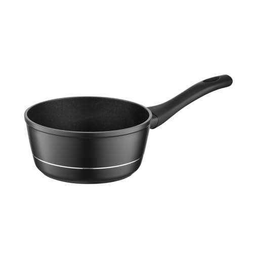 kela kastrull med glaslock 16 cm STELLA NOVA, induktion kastrull liten med oljekontrollsystem, gjuten aluminium mjölkkruka belagd 1 L, svart