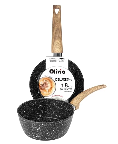 IPEA Non-stick induktionsgryta – 18 cm – elegant steneffekt kastrull – 18 cm – liten mjölkkastrull för matlagning och kokning av soppor, grönsaker, nudlar – mjölkkokare