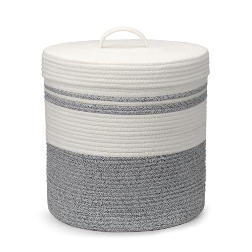 Goodheim Vikbar Tvättkorg Med Lock - Liten Flätad Bomullskorg, Förvaringskorg för Barnrum (Grå, 35 x 42 cm)