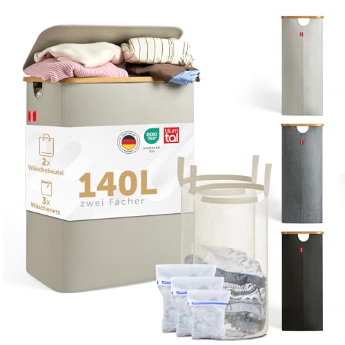 Blumtal Tvättkorg 140 L - 2 Fack Med Löstagbara Tvättpåsar - Förvaring Av Pantflaska - Beige, Smal Och Liten