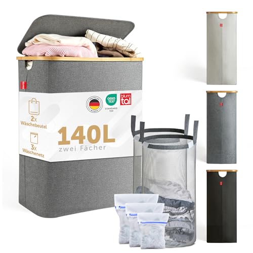 Blumtal Tvättkorg 140 L - 2 Fack Med Avtagbara Tvättpåsar - Förvaring Av Pantflaska - Grå, Smal Och Liten