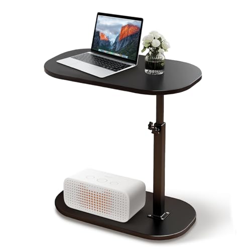XUDREZ Justerbart C-format sidobord, 360° svängbart bord, vardagsrumsbord, modernt litet soffbord för säng/badkar (svart valnöt)