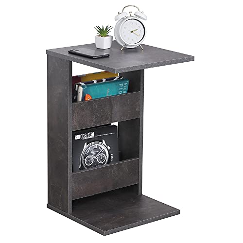 RICOO Litet sidobord i trä, 35 x 60 x 40 cm, soffbord med förvaringsutrymme, betongutseende grått – WM042-BG, konsolbord, vardagsrumsbord för soffa, litet bord, minibord, litet soffbord i C-form
