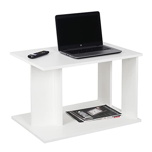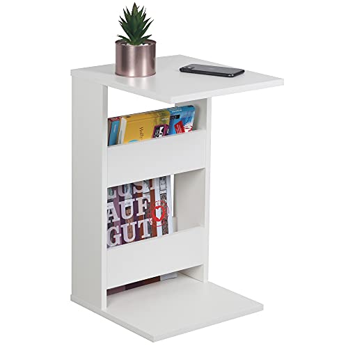RICOO Litet sidobord, trä, vitt, 35 x 60 x 40 cm, soffbord med förvaringsutrymme, vitt – WM042-WM, konsolbord, vardagsrumsbord för soffa, litet bord, minibord, litet soffbord i C-form