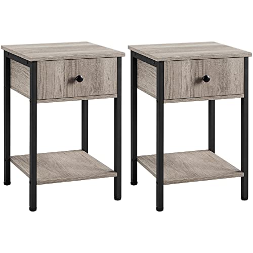 Yaheetech 2 x nattduksbord sidobord med låda och hylla nattduksskåp industriell design litet soffbord med förvaringsutrymme 40 x 40 x 61 cm grå