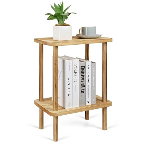 VIEWALL Sidobord trä med förvaringshylla 2 våningar nattduksbord 40 x 26 x 55 cm soffbord litet för sovrum vardagsrum balkong kontor kök litet bord