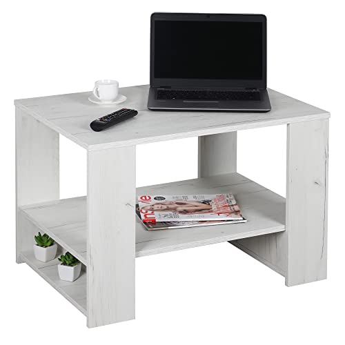 RICOO Soffbord med förvaringsutrymme 72 x 50 x 50 cm, soffbord trä, vardagsrumsbord för soffa vitt ek – WM090-EP – bord, vardagsrumsbord, soffbord, kaffebord, litet soffbord