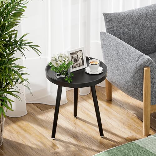 APICIZON Sidobord svart rund, litet bord, 38 x 45 cm, vardagsrumsbord, nattduksbord med ben av massivt trä, skandinavisk stil, litet soffbord trä för sovrum, balkong