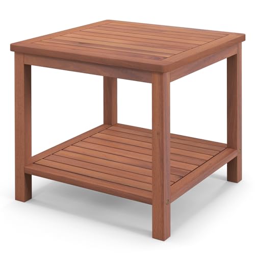 COSTWAY Sidobord akaciaträ, trädgårdsbord, träbord, litet balkongbord, kvadratiskt soffbord för trädgård, balkong, terrass, 45 x 45 x 45 cm