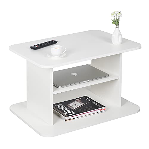 RICOO Soffbord med förvaringsutrymme 69 x 50 x 45 cm, soffbord trä, vardagsrumsbord för soffa vitt – WM094-WM, bord, vardagsrumsbord, soffbord, kaffebord, vitt litet soffbord