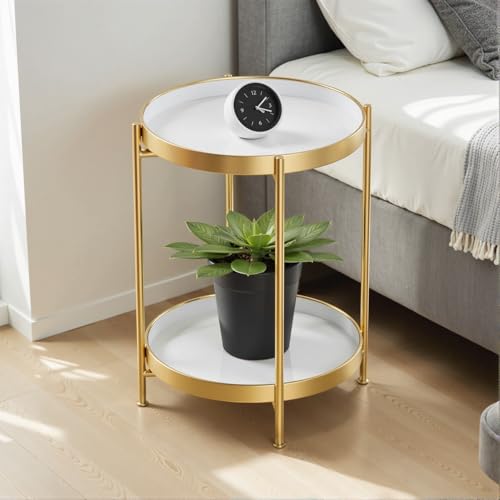 Sidobord, sidobord, litet sidobord rund metall, 40 x 40 cm litet soffbord, soffbord för vardagsrum soffa vardagsrum balkong utomhus guld vitt