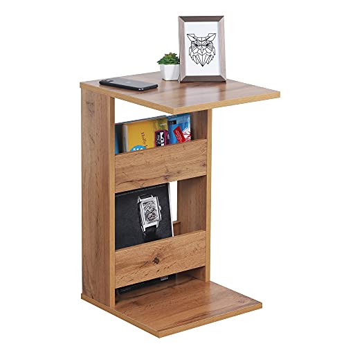 RICOO Litet sidobord av trä, 35 x 60 x 40 cm, soffbord med förvaringsutrymme, ek Wotan brun – WM042-EW, konsolbord, vardagsrumsbord för soffa, litet bord, minibord, litet soffbord i C-form