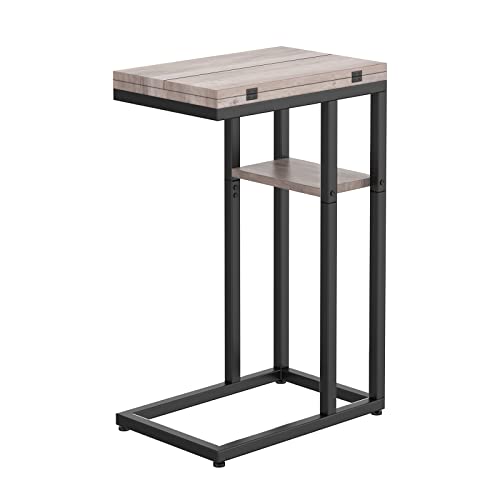 HOOBRO C-format sidobord, vikbart soffbord, sängbord, snacksbord, laptophållare bord för soffa, små utrymmen, litet soffbord, vardagsrum, sovrum, greige och svart EBG29SF01