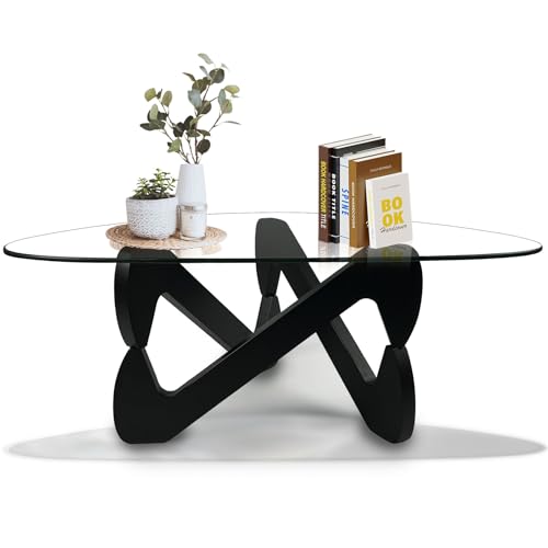 GESEILAY Soffbord i glas för vardagsrum, triangulärt litet modernt soffbord i trä för vardagsrum, svart bas (svart, transparent, 91)