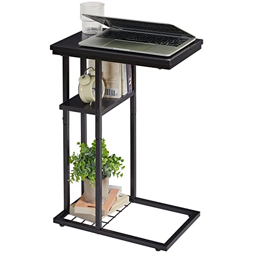 YMYNY Sidobord, sofftå, 2-vånings C-format soffbord, soffbord, litet metallstruktur, industriell stil för vardagsrum, sovrum, kontor, 40 x 26 x 61,5 cm, svart HST004B