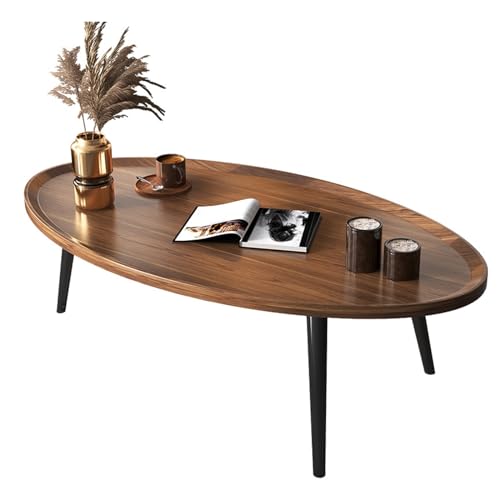 Litet Ovalt Soffbord,Modernt Soffbord Från Mitten Av århundradet för Vardagsrum,Minimalistiskt Sidobord (Valnötsfärg, 80x55x38cm)