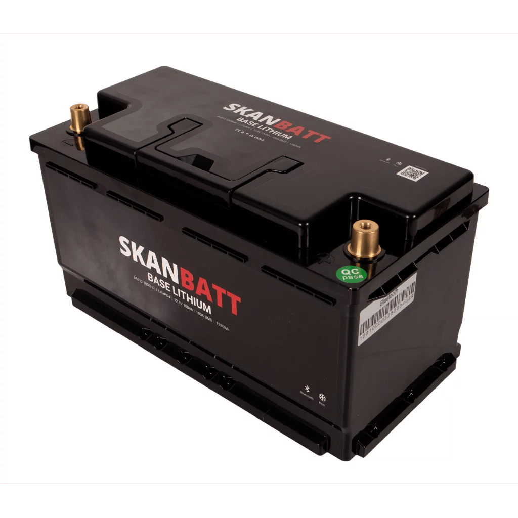 SKANBATT Base Lithium - 12V 100Ah 100A BMS - Bluetooth - Heat - 355x175x190mm - 3 Års garanti - Husbil