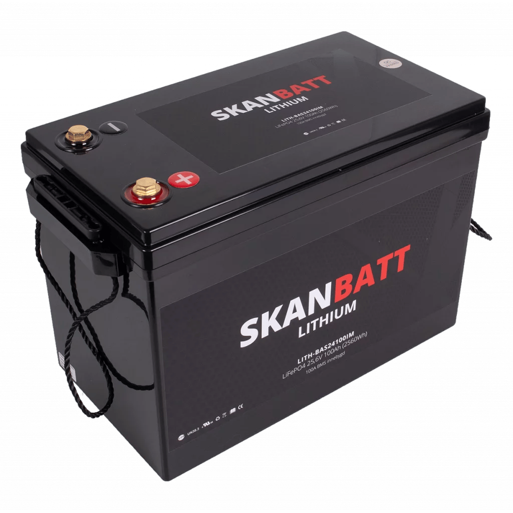 SKANBATT Base Lithium - 24V 100Ah 100A BMS - 330x175x220mm - 3 Års garanti