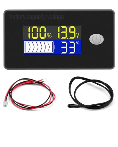 VOKTTA Batterikapacitetsmätare med larmsensor och temperatur -19~80 ℃ 12V 24V 36V 48V 60V 72V för litiumbatteri, blybatteri