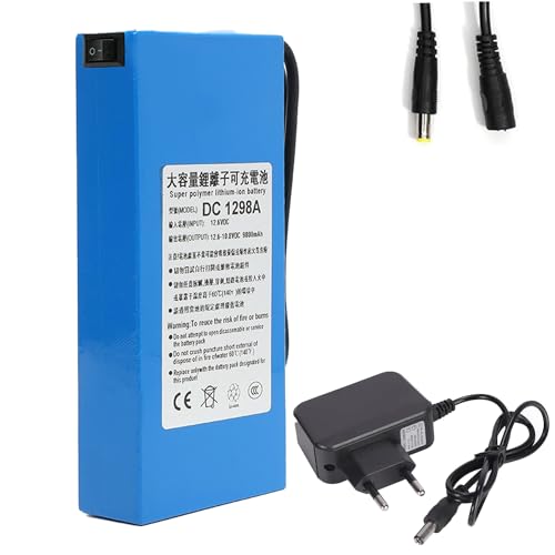 HSSYTZOUL Uppladdningsbart litiumjonbatteri DC 12 V uppladdningsbart litiumjonbatteri 9800Mah Kraftfullt bärbar polymer litiumbatteri Lämpligt för 12V strömutrustning med laddare,Blue,12V