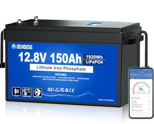 DCHOUSE LiFePO4 litiumbatteri på 12V 150Ah med Bluetooth, lågtemperaturskydd, 4000–10000 cykler, djupcykel-litiumbatteri, perfekt för husbilar, solanläggningar, husvagnar och trollingmotorer