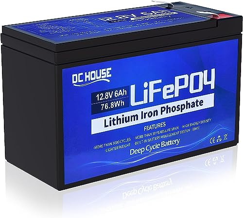 DCHOUSE 12V 6Ah LiFePO4 uppladdningsbart litiumbatteri med 3000+ djupa cykler och BMS-skydd för solsystem, fisksökare, barnvagn, båt, solpanelssats, husbil, camping
