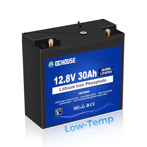 DCHOUSE 12V 30Ah LiFePO4 Batteri, litiumbatteri för djupcykel, uppladdningsbart med över 4 000 djupcyklar och BMS-skydd, för gräsklippare, solpanel, båt med motor, husbil och camping.
