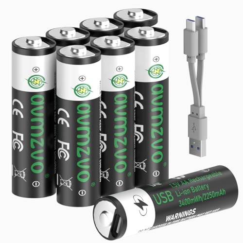 avmzvo AA-batterier, 1,5 V, 3 400 mWh, uppladdningsbart USB-C litiumbatteri med 2-i-1 USB-C laddkabel, 2–3 timmar snabb laddning, 8 stycken