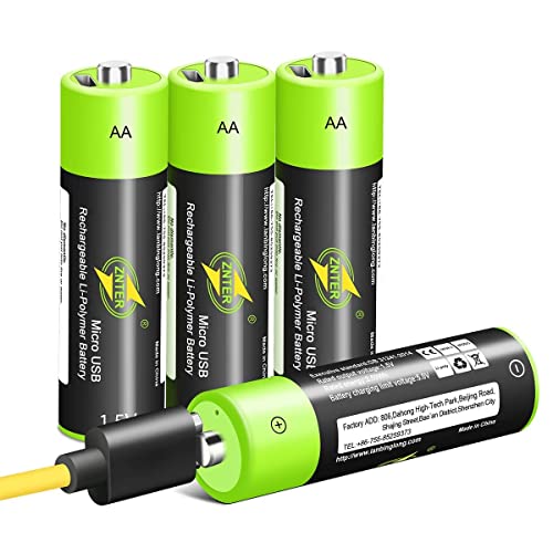 AA-batterier [4-pack], 1,5 V/1 250 mAh USB-uppladdningsbart litiumbatteri med 4-i-1 laddning Micro USB-kabel, 1,5 h snabbladdning, ingen extra batteriladdare krävs, 3 000 cykler återvinningsbart