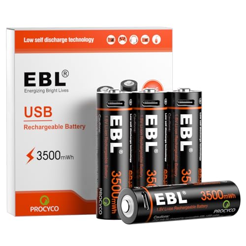 EBL litiumbatteri AA – 1,5 V uppladdningsbara AA litiumbatterier med USB C-laddning, stark effekt AA batteri 4 stycken