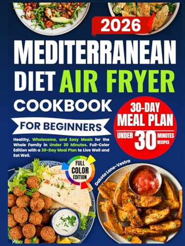 Mediterranean Diet Air Fryer Cookbook for Beginenners: Healthy, Wholesome, and Easy Meals for the Whole Family in Under 30 Minutes. Full-Color Edition with a 30-day Meal Plan to Live Well and Eat Well.