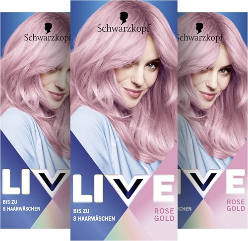 Schwarzkopf LIVE Pretty Pastels semi-permanent hårfärg P123 roséguld (3 x 142,5 ml), färgning håller upp till 8 hårunderkläder, med vårdande balsam för intensiv vård
