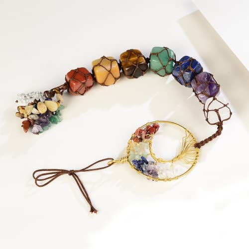Livets träd chakrastenar helande kristaller Feng Shui hängande prydnad 7 chakra väggdekoration