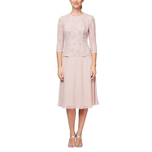 Alex Evenings dam 3/4-ärm stretch spets livstycke klänning, Skal rosa, 40
