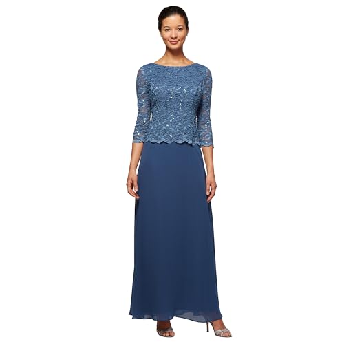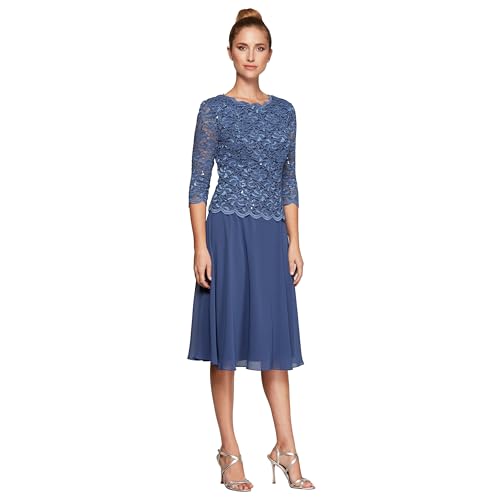 Alex Evenings dam 3/4-ärm stretch spets livstycke brudens mor klänning (små och vanliga storlekar), Wedgewood blå, 40-petite