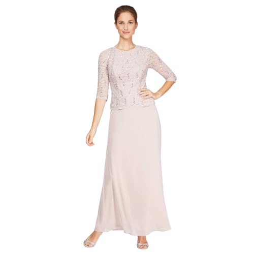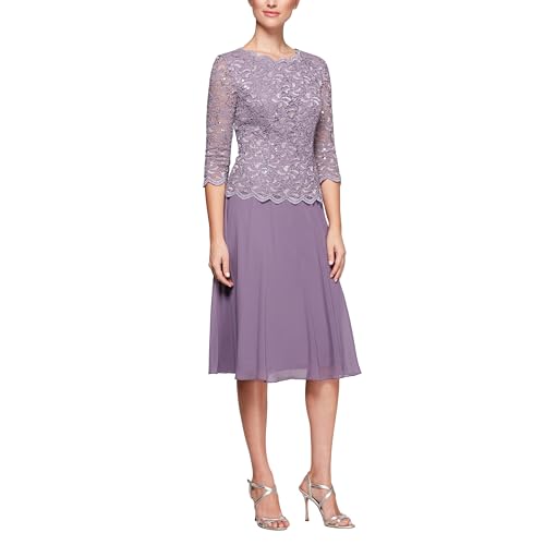 Alex Evenings Klänning med 3/4-ärm, stretch, spets, livstycke, klänning för brudens mor (små och vanliga storlekar), 46-petite