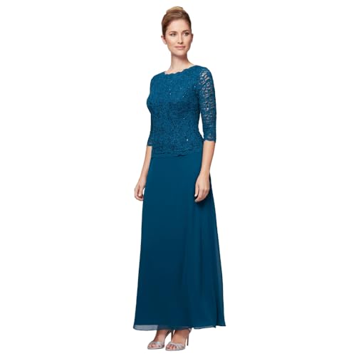 Alex Evenings Klänning med 3/4-ärm, stretch, spets, livstycke, brudens mor-klänning (små och vanliga storlekar), Påfågel, 42