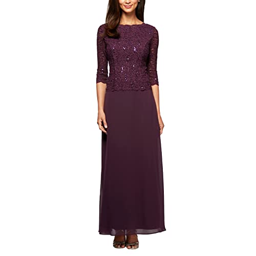 Alex Evenings Plusstorlek lång aftonklänning för kvinnor med paljett spets livstycke, Djup plommon, 42 SE/Liten