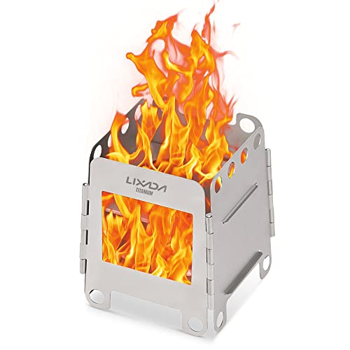 Lixada Camping Vedspis Bärbar vedeldad spis Lätt alkoholspis för matlagning utomhus Backpacking Vandring Resa (Titan/Rostfritt stål)