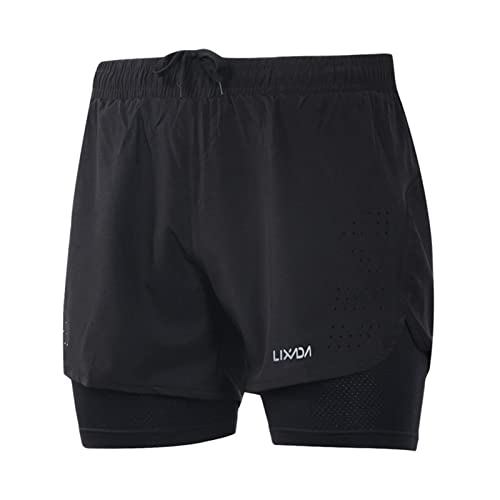 Lixada 2-i-1 löparshorts för män, atletiska shorts, maraton fitnessshorts, andningsbara byxor + snabbtorkande