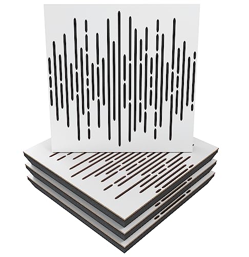 Ljudabsorberande akustisk panel, ”Wave”, 50 x 50 x 5 cm, absorption, diffusion, reflektion, ljudisolering, isolering, 4-pack, trä, perforerad, laminerad: (Wave, vit)